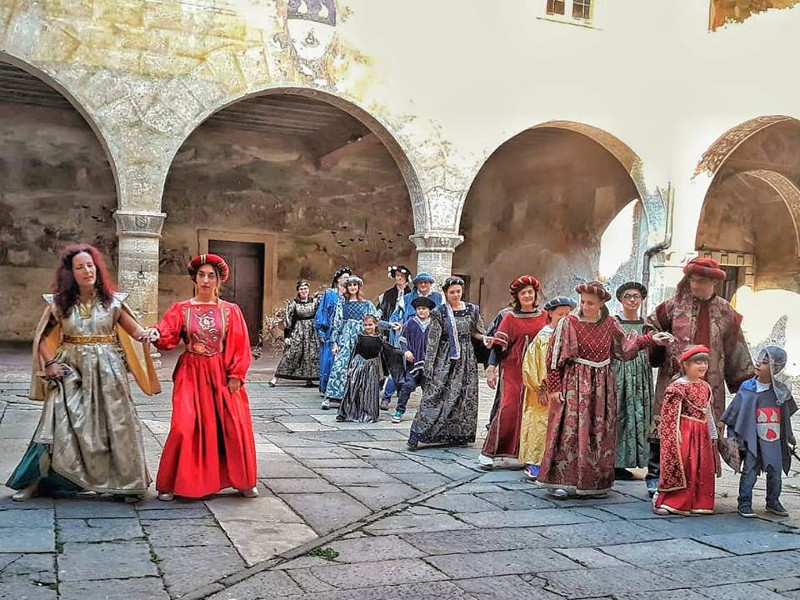 Nel Parco del Serio, a pochi chilometri da Bergamo, sorge il castello di Malpaga, una delle più importanti costruzioni lombarde del Quattrocento per rilevanza storica, architettonica e artistica. Fu l’antica dimora signorile del Capitano della Repubblica di Venezia Bartolomeo Colleoni, che lo acquistò nel 1456 ristrutturando una preesistente rocca trecentesca e arricchendola con pregevoli affreschi. L’elegante cortile d’onore e il Salone dei Banchetti, col suo ciclo narrativo cinquecentesco che illustra la visita di Re Cristiano I di Danimarca avvenuta nel 1471, ospitano vere e proprie “fotografie d’epoca”, realizzate dai maestri del realismo lombardo Marcello Fogolino e “Il Romanino”. Al piano nobile troviamo raffinati affreschi quattrocenteschi nello stile del “gotico cortese”, eseguiti da maestranze francesi provenienti dalla Borgogna e dipinti cinquecenteschi a carattere sacro e mitologico di Lattanzio Gambara, Bonifacio Bembo e Giambattista Castello. Notevoli le scene mitologiche classicheggianti del lucchese Pietro Ricchi che impreziosiscono alcune sale del piano terra.