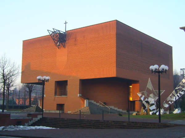 La chiesa di San Pietro Apostolo si inserisce con forte impatto nel contesto delle campagne circostanti, esprimendo un’intensa ricerca di dialogo sia con il centro storico di Sartirana, sia con la chiesa prospiciente. Fu realizzata tra il 1987 e il 1995 sul progetto dell’architetto Mario Botta e si presenta come un parallelepipedo circoscritto a un cilindro che avvolge i fedeli in uno spazio a pianta centrale. La grande vetrata circolare del presbiterio illumina le pareti interne ricoperte da mattoni che creano un delicato chiaroscuro.