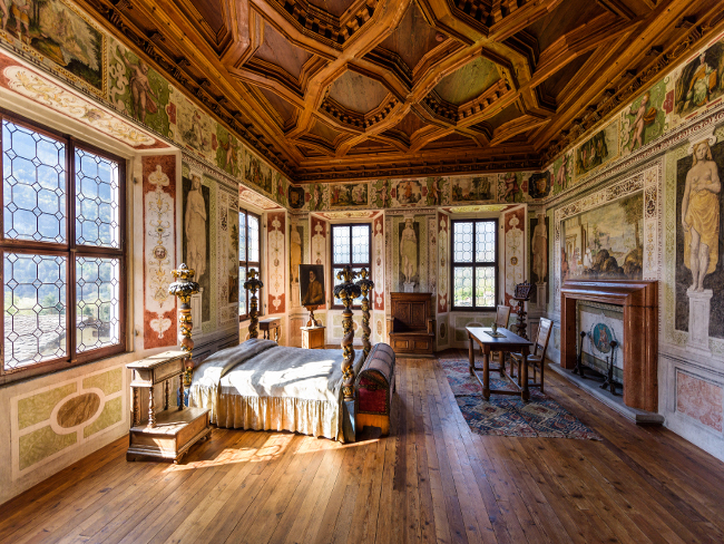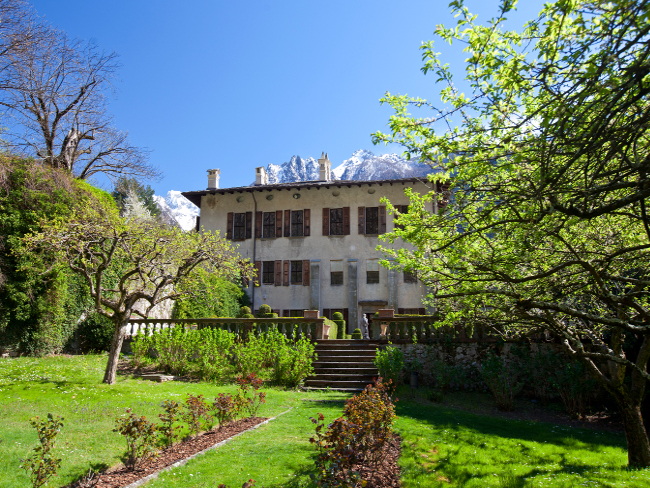 Palazzo Vertemate Franchi fu eretto dai fratelli Vertemate Franchi, provenienti da una delle famiglie più ricche di Piuro, ed è l’unico edificio delle proprietà che si salvò dalla frana del 1618 che sommerse il paese con molti dei suoi abitanti. La dimora è immersa in un ambiente incantevole e comprende il palazzo, alcuni rustici e un’area verde molto estesa di epoca rinascimentale. Grazie alla posizione climaticamente privilegiata, attorno al palazzo si è potuto dar luogo anche a un vigneto per la produzione del Vertemate Vino Passito. All’interno pareti e soffitti a volta sono riccamente affrescati e vi sono rappresentate grandi scene mitologiche; stüe e soffitti intarsiati sono sicuramente le meraviglie del palazzo. Dal 1988 il complesso è diventato museo di proprietà del comune di Chiavenna, il quale si è preoccupato della sua conservazione. Grazie al progetto “Palazzo Vertemate Franchi: laboratorio di arti e mestieri” finanziato da Fondazione Cariplo e dopo un attento lavoro di restauro e riqualificazione, dal 2019 torneranno aperti al pubblico alcuni rustici pertinenziali adibiti a ristorante e caffetteria. Anche l’orto della Villa è tornato al suo antico splendore, grazie al ritrovamento dell’antico archivio della famiglia in cui sono descritte le piante e i fiori coltivati all’epoca.