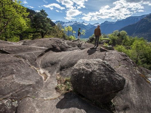 In una magnifica posizione panoramica al margine orientale di Chiavenna si trovano i colli “Paradiso” e “Castellaccio” che insieme formano il parco botanico-archeologico del Paradiso. Il parco è compreso nell’ampia area protetta della riserva naturale “Marmitte dei giganti“. I due colli sono separati dalla profonda spaccatura della “Caurga”, e a collegarli vi è un’ardita e singolare passerella. Il parco è davvero suggestivo e sicuramente meritevole di una visita. Sulle due rupi si possono osservare singolari aspetti ambientali; varietà botaniche di fiori e piante; svariati resti archeologici e storici tra i quali ruderi delle vecchie mura e della rocca, manufatti artistici e architettonici in pietra ollare, pavimentazioni in “botòn” (scarti di tornitura della pietra ollare).