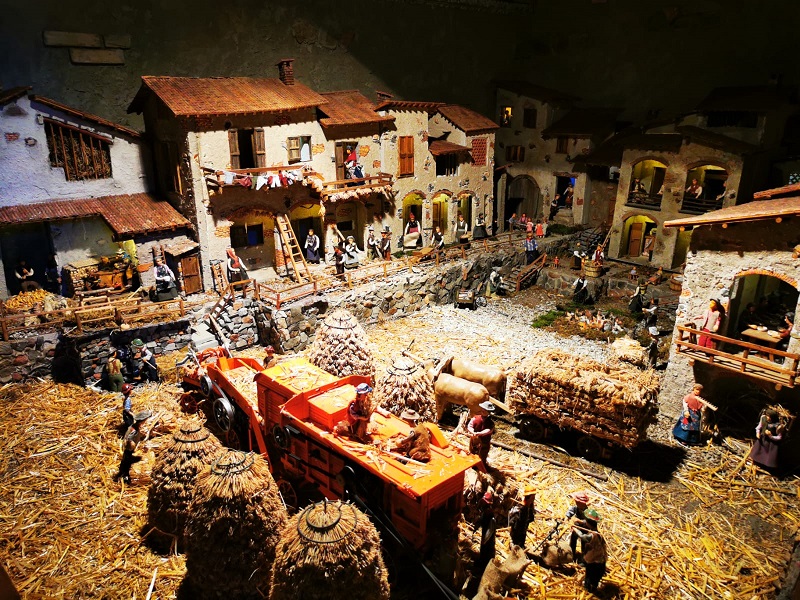 Nell’ultima parte del percorso di visita vengono rappresentanti altri mestieri come la sarta, il meccanico, il falegname e il panettiere. Il giro si conclude proprio con un piccolo panettone che viene gettato in un fiumiciattolo dentro una scatola e viene poi pescato più a valle da un pescatore.