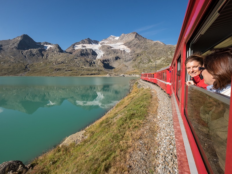 Penso che il viaggio sul treno sia bello tutto, ma la cosa che più mi colpisce è riuscire in due ore e mezza a passare dai vigneti della Valtellina, ai laghi alpini, ai ghiacciai e arrivare alla cittadina glamour di St. Moritz. L'esperienza sul treno permette di vedere un ventaglio di luoghi, e a volte di stagioni, davvero ampio. Spesso infatti si parte da Tirano con un clima primaverile e si arriva sulla neve!