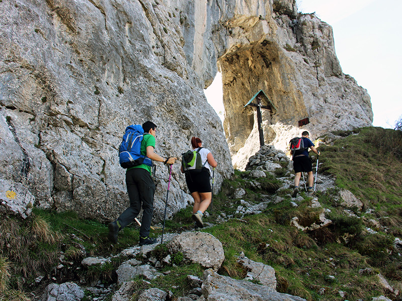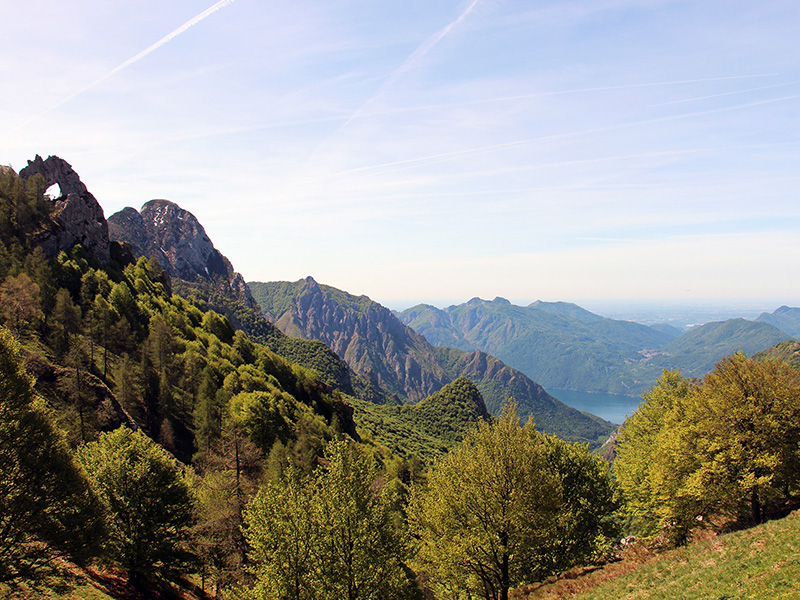Questa escursione in provincia di Lecco è molto bella dal punto di vista paesaggistico e presenta un dislivello abbastanza limitato, nonostante alcuni punti in prossimità di ghiaioni e la modesta lunghezza del percorso. Si raggiunge in auto il Passo del Cainallo da Esino Lario e si prosegue fino  a un parcheggio alla fine della strada. Da qui parte il sentiero n.24 ben segnalato. Ci si incammina in un bosco e, arrivati ad un bivio, si sale fino alla Bocchetta di Prada. Da questo punto in poi tutto il sentiero si sviluppa lungo il crinale panoramico da cui si scorgono il Lago di Como e le diverse cime che lo circondano. Si raggiunge poi una cappella e, dopo un saliscendi, si arriva fino alla spettacolare Porta di Prada, una formazione rocciosa somigliante ad un arco sotto il quale è posta una croce. Si prosegue attraversando alcuni ghiaioni e dei tornanti in discesa per poi risalire fino al rifugio Bietti Buzzi (m 1719), posto in posizione panoramica sul lago e sulla ripida parete del Grignone.